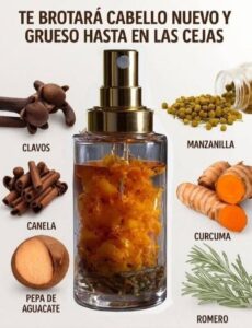 Mantener un cabello fuerte y cejas definidas no siempre requiere productos químicos costosos. Con esta mascarilla natural, elaborada a base de clavos dulces, canela, manzanilla, cúrcuma, romero y pepa de aguacate, puedes estimular el crecimiento del cabello, fortalecerlo y limpiar el cuero cabelludo de manera efectiva. Además, sus propiedades naturales ayudan a nutrir los folículos y mejorar la salud general del cabello.